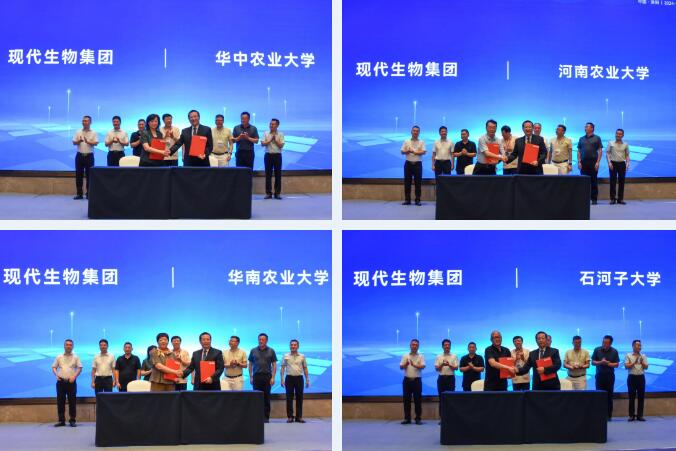 郎洪武院長代表現(xiàn)代生物集團(tuán)與華中農(nóng)業(yè)大學(xué)金梅林院士、河南農(nóng)業(yè)大學(xué)張龍現(xiàn)院長、華南農(nóng)業(yè)大學(xué)趙明秋教授、石河子大學(xué)屈勇剛教授進(jìn)行簽約,瞄準(zhǔn)水禽疫病防控空白領(lǐng)域,深耕精制抗體及高效疫苗技術(shù)研究,針對(duì)水禽多種疫病混合感染,加速開展多聯(lián)多價(jià)防治產(chǎn)品研究與應(yīng)用。